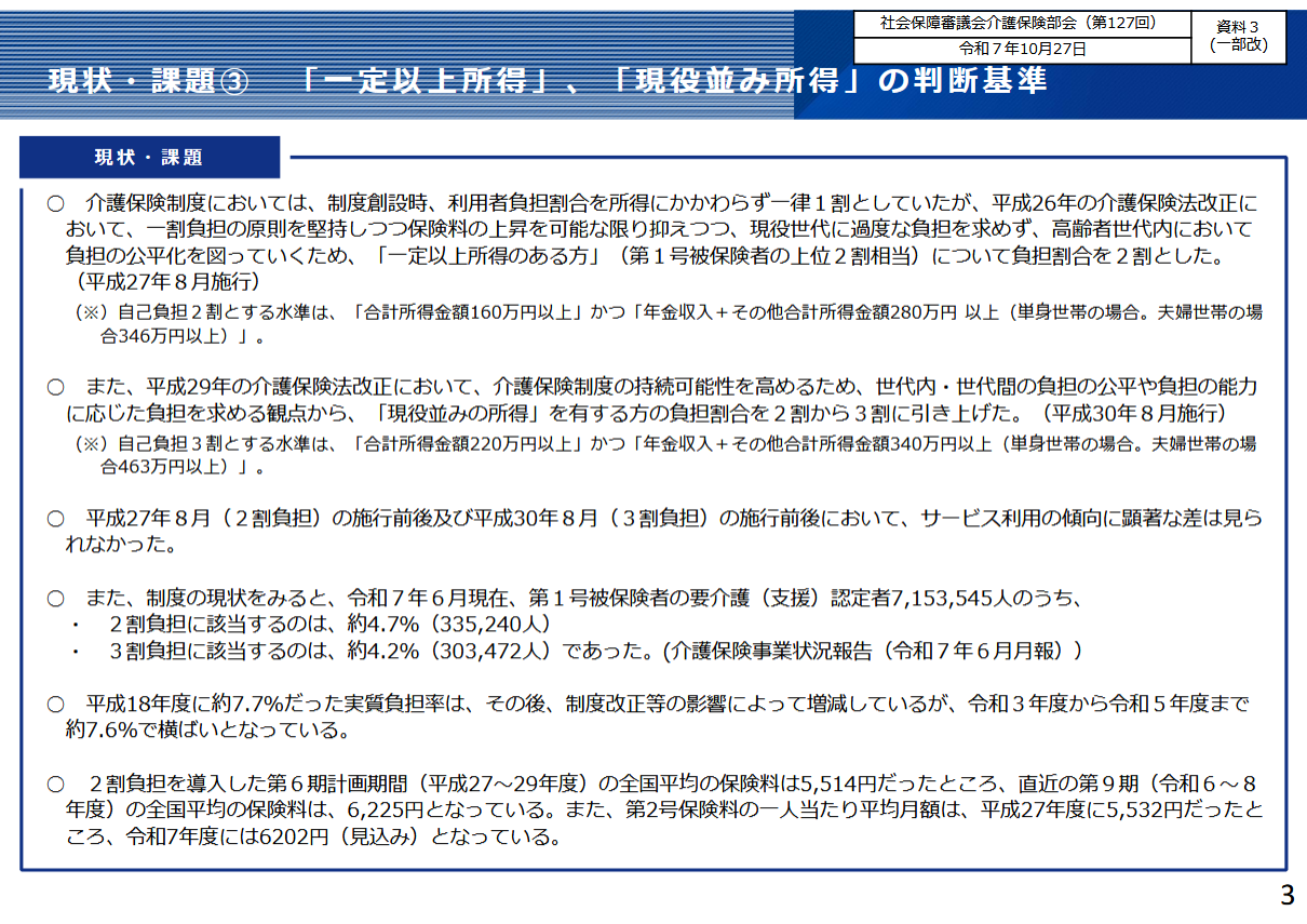委員からは「高齢者の生活実態を踏まえた慎重な検討をすべき」「物価上昇と医療費負担の増加がある中、追加負担は生活に直結する」「負担増を行うにしても公平性の確保が重要」といった意見が相次ぎ、特に預貯金確認に関する事務負担の懸念が多くの自治体関係者および介護現場から示されました。