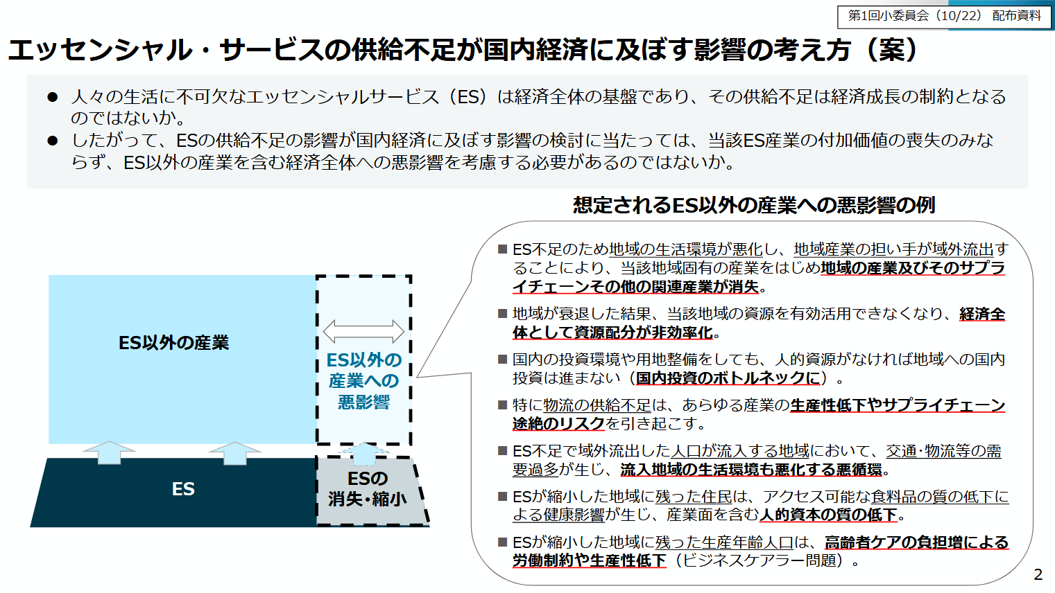 エッセンシャルサービス不足の経済影響