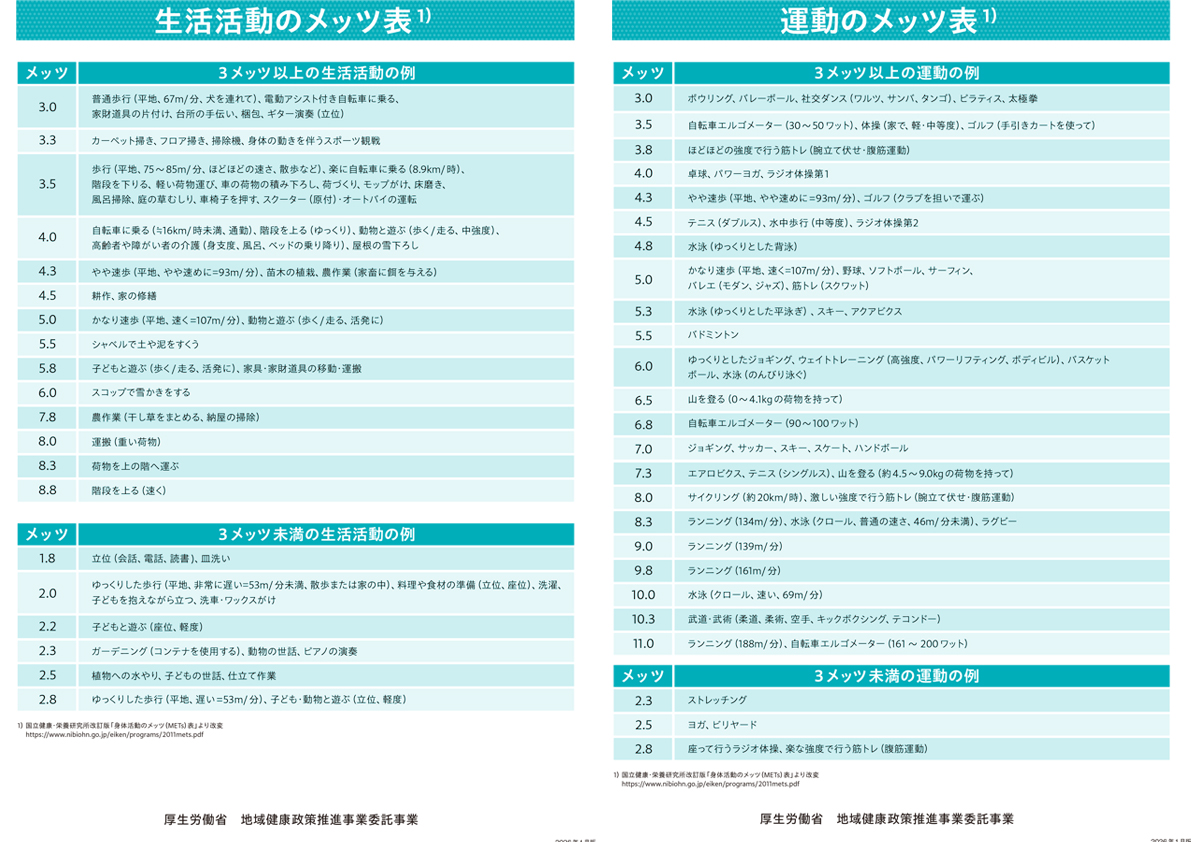 ※METsは活動の強度を示す目安です。