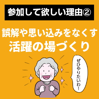 ・身体面、認知機能面を含めた馴染みのメンバーでお互いの地域で助け合うグループづくりや認知症への偏見をなくす場所づくり