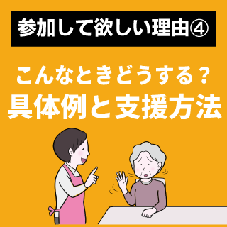 ・「急に怒る」「帰りたいと強く訴える」「介護を拒否する」といった行動・心理症状の原因と目的を探究するプロセスを体験